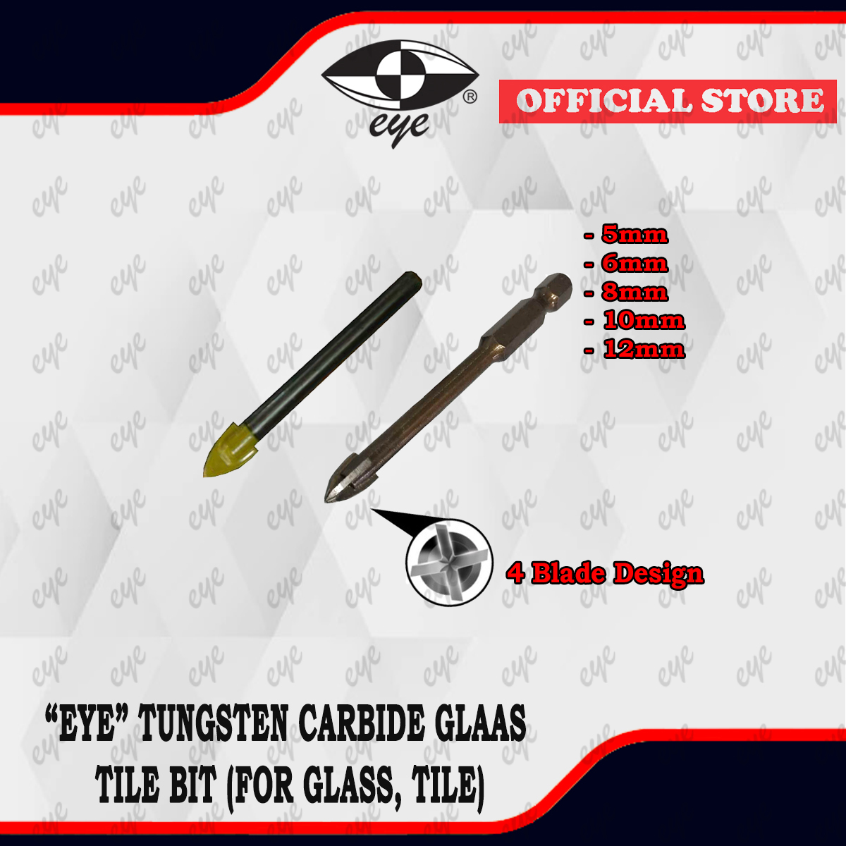 [ EYE ] Tungsten Carbide Glass Tile Bit / TCT Tip Drill Bit Head High Quality ( For Glass/Tile ) ( 12GTB00 ): 12MM 12GTB0010